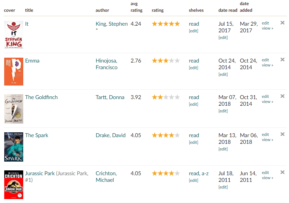 So, out of these 5 books that took me down memory lane, I really want to re-read Jurassic Park! I will never re-read It, it was just too long XD Instead I do feel like reading another Stephen King book. The Goldfinch is one I also don’t need to read again, didn’t like it, no need to go there again. The Spark does have some potential and I saw that there is a sequel so I could check that out if I want to read something else by the same author. Emma is one that is more interesting than I remembered but I don’t have any strong feelings about it either way.